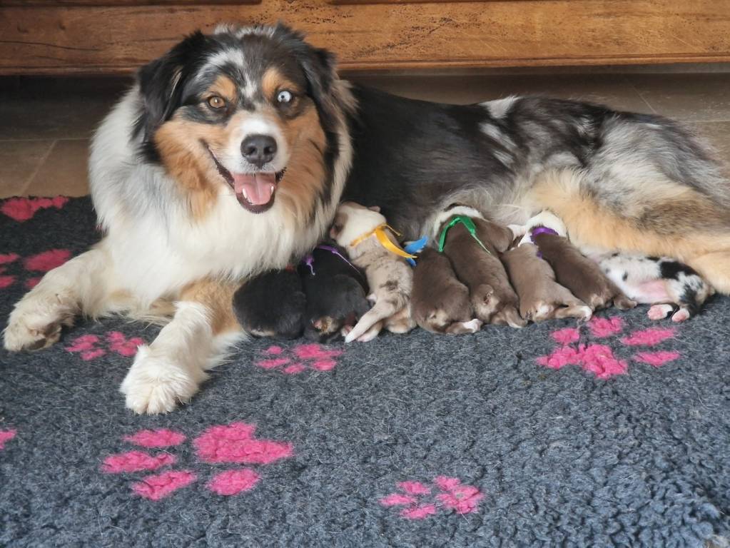 Arya est l’heureuse maman de 8 magnifiques chiots Berger Australien :
