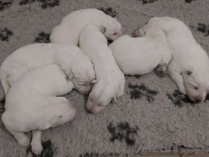 Les chiots sont nés le 9 décembre 2021 et pourront partir en février 2022 pucés, vermifugés et vaccinés. Ce sont d'adorables bébés bien blancs et sains.