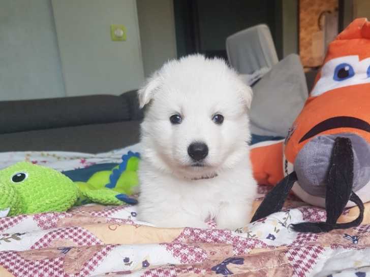 Nous avons un élevage familial. Chez nous, pas de box, les chiots naissent et grandissent dans la maison avec nous, nos enfants et d'autres chiens. Le Berger Blanc Suisse est un compagnon affectueux, très proche de son maître.