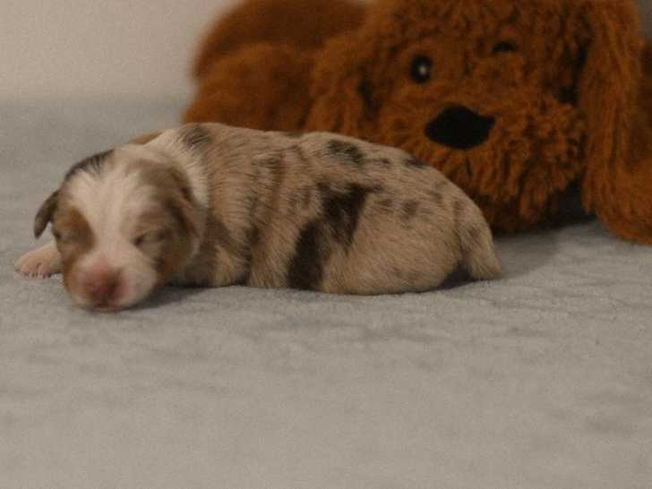 Nous avons le plaisir de vous proposer d’adorables chiots Bergers Américains Miniatures issus de Pop Rock Dakota des Quatre Vents Zen et Pepsy of American Madness. Nés le 5 septembre 2025, ils grandissent dans notre famille avec trois enfants et plusieurs animaux, garantissant une socialisation optimale.