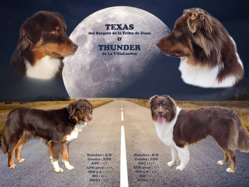 Pour la troisième fois et comme par le passé, Texas et Thunder, notre couple fétiche de Bergers Australiens, devraient nous donner une belle portée de chiots exclusivement rouge tricolore (comme les parents).