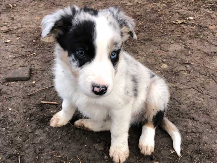 3 adorables chiots Border Collie sont à réserver. Ils sont nés le 13 janvier d'une mère bleu merle et d'un père noir et blanc (ils sont visibles sur place). Il y a :