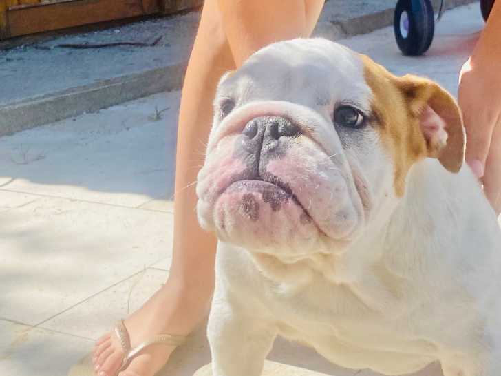 Nous proposons Krispies, une femelle Bulldog Anglais née en 2020, pour une retraite heureuse dans un foyer calme. Confirmée et inscrite au Livre des Origines Français (LOF), cette chienne profondément câline...
