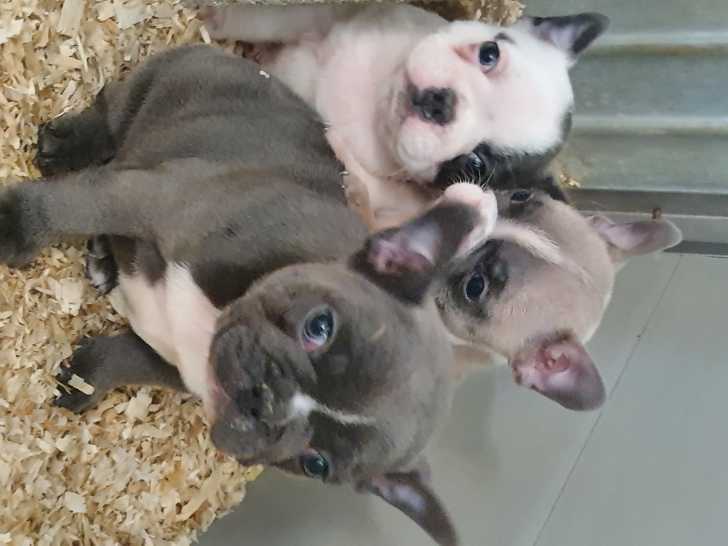 3 femelles Bouledogue Francais de couleur exotique, donc non LOF, sont à vendre.