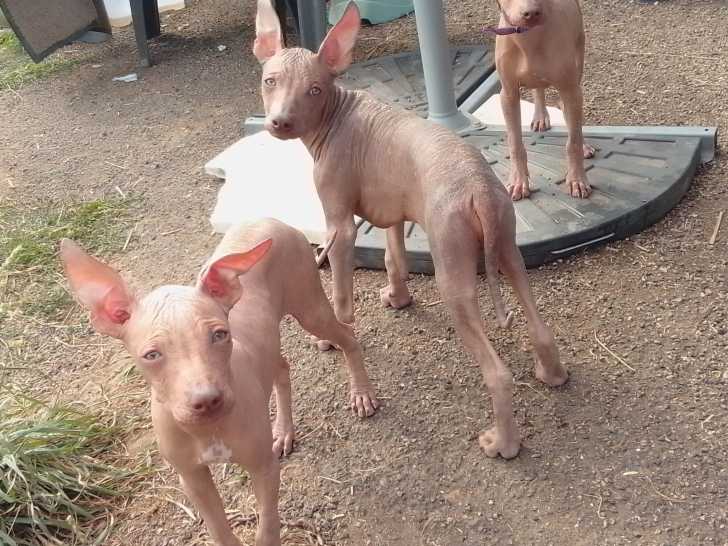 Ils sont de variété nue et de couleur cuivre ou noire. Il y a aussi des chiots poilus : fauve, sable et chocolat (tricolore).