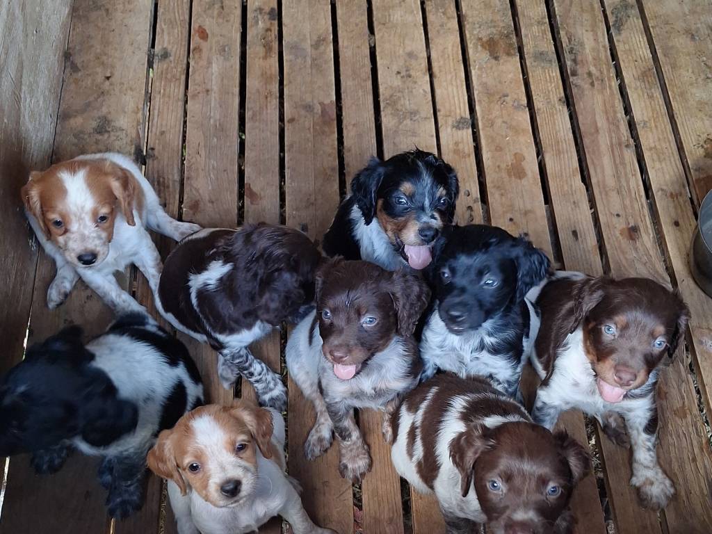 Notre élevage propose à la réservation 6 chiots Épagneul Breton, nés le 4 mars 2026, disponibles à partir de 9 à 10 semaines, non inscrits au Livre des Origines Français (non LOF). Trois mâles et trois femelles...