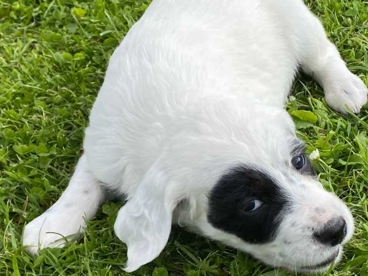 2 chiots Setter Anglais nés le 29 avril 2024 sont à vendre. Il y a 1 mâle blue belton et 1 mâle lemon. Ils seront disponibles fin juin, vaccinés et pucés, avec un certificat vétérinaire. Ils seront inscrits au LOF.