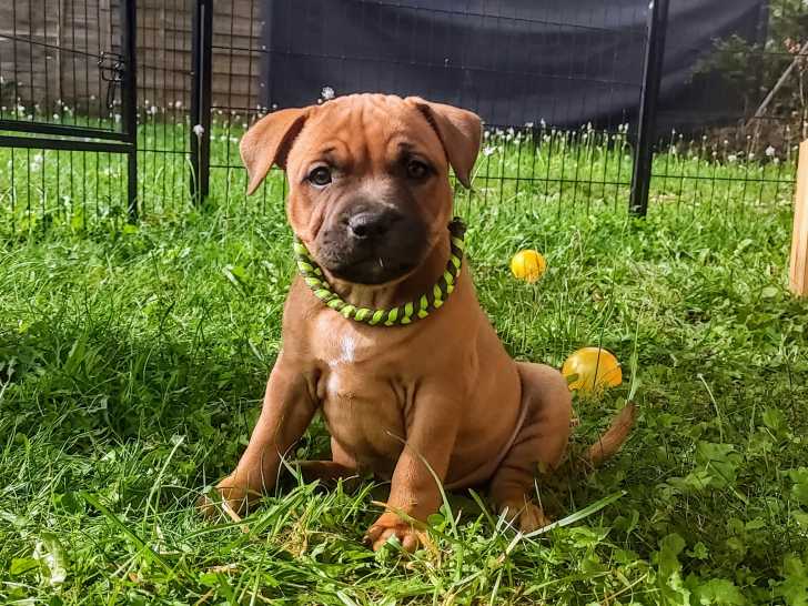 Nous attendons donc des chiots sportifs, mais aussi de bons chiens de familles. Les parents sont vraiment adorables au quotidien, sans oublier qu'ils restent des Staffies ! Déjà bien dans leurs pattes, ils découvrent chaque jour de nouvelles choses et partagent notre quotidien, ainsi que celui de nos autres loulous à 4 pattes (chat et chiens).