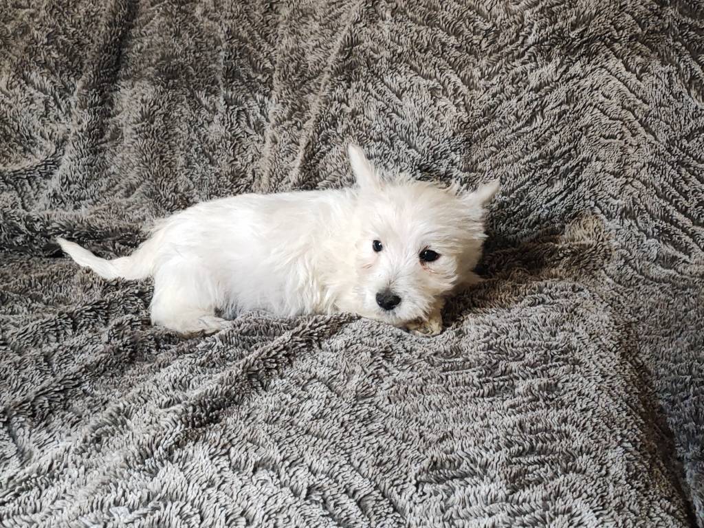 Nous avons la joie de vous annoncer la naissance de 5 chiots Westie : 3 femelles et 2 mâles. Ils sont nés le 19 octobre .