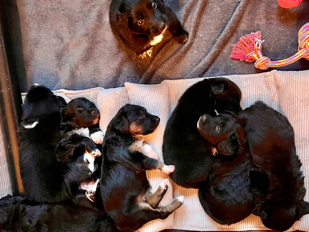 Nos parents Rolls et Tulin sont heureux de vous annoncer notre naissance. Nous sommes 8 chiots Border Collie de 4 semaines, déjà bien éveillés. Nous recherchons nos futurs foyers pour nous épanouir au milieu d'amour.