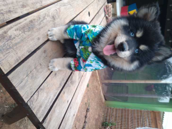 Nous avons un élevage familial dans le sud de la France. Nous proposons 3 jolis chiots Pomsky : 2 de couleur exotique bleu merle, et 1 tricolore. Ce sont tous des mâles aux yeux bleus.
