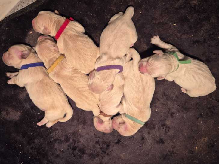 Nos petits Golden Retrievers sont des chiots pleins de douceur et d'intelligence. Ils grandissent dans un environnement stimulant et apprennent à interagir avec les enfants. Ils sont nés le 31 octobre 2025,...