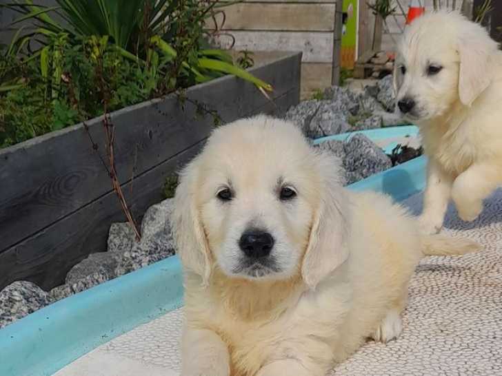 Disponibles immédiatement, nos trois chiots Golden Retrievers nés le 21 mai 2025 ont grandi au sein de l’élevage familial Les Anges de l’Aube. Habitués aux enfants, aux chats et aux bruits du quotidien, ils...