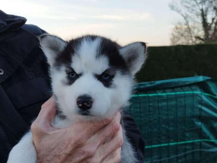 3 chiots Husky, 1 mâle et 2 femelles, sont à réserver. Ils sont nés le 13/11/2025. Les parents sont inscrits au LOF.