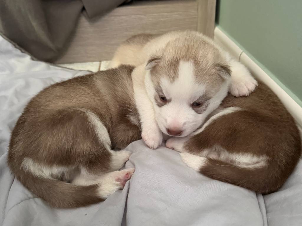 Le 7 avril, sont nés 6 adorables chiots Husky. Ils sont issus d'une mère et d'un père inscrits au LOF. Le père vient de l'élevage Daybreak Northern Rivages Dulemboulas.
