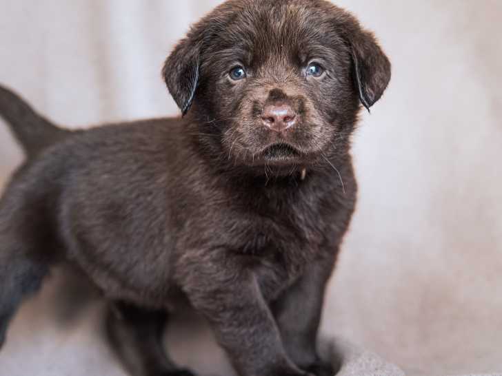 Des chiots Labrador chocolat âgés de 8 semaines sont à vendre. Ils sont pucés, vaccinés et vermifugés. Ils ont leur carnet de santé. Les parents sont inscrits au LOF.
