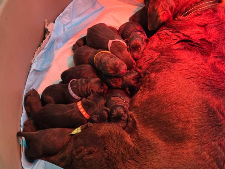Des chiots Labrador chocolat nés le 27 mars sont à réserver ! Il y a 6 femelles et 4 mâles. Les visites sont les bienvenues.