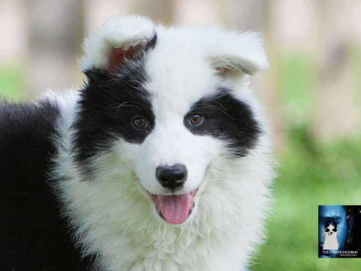 Robe blanche et noire, poils longs.