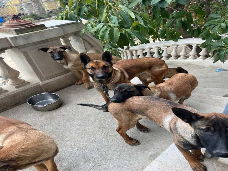 Le père et la mère sont visibles sur place. Ce sont des Malinois tous les deux.
