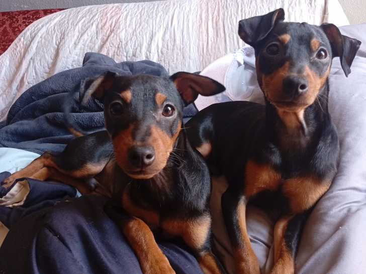 De beaux Pinschers de 4 mois sont disponibles maintenant. Ils sont nés le 6 décembre 2024. C'est une portée de 4 chiots. La maman pèse 5 kg et le papa 5,5 kg.