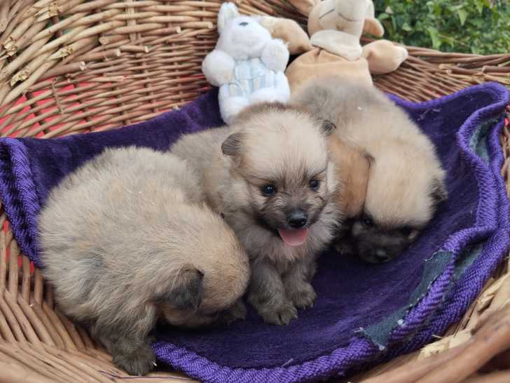 L'élevage Snoopy et Compagnie s'agrandit avec la naissance de 4 magnifiques Spitz Allemand LOF : 2 femelles et 1 mâle de couleur sable charbonné et 1 mâle fauve charbonné.