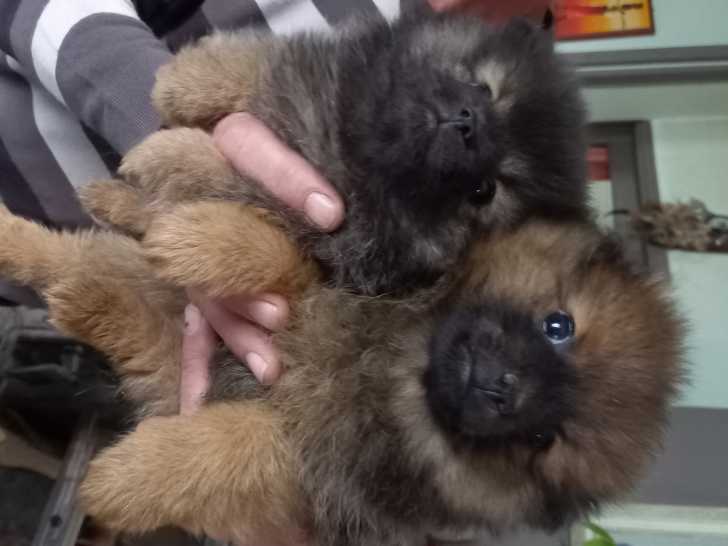 Je vends 2 petits mâles Spitz nés le 6 février 2022. Il y a un noir de 800 grammes et un marron de 1,2 kg.