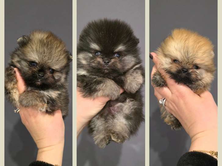 Trois oursons Spitz Nains Poméraniens vraiment très petits (ils pèsent entre 200 et 300 grammes à 1 mois) sont à vendre. Ils seront disponibles pour des personnes disponibles dès fin mars.