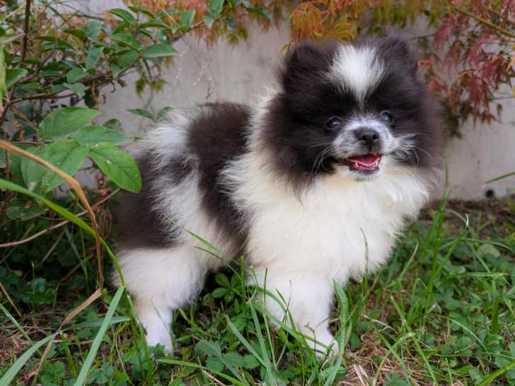 Apéro est un magnifique petit mâle panaché noir de race Spitz Allemand, il sera de taille petit, environ 5kg à l'âge adulte.