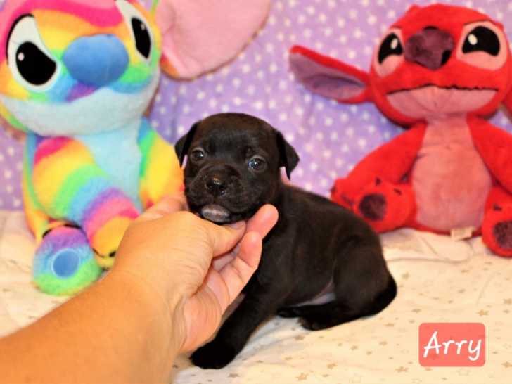 L’élevage La Terre des Bulls vous propose ses superbes chiots Staffordshire Bull Terrier (staffie). Sur une portée de 6 chiots, 4 mâles sont disponibles à la réservation. Ils sont noir bringé panaché blanc.