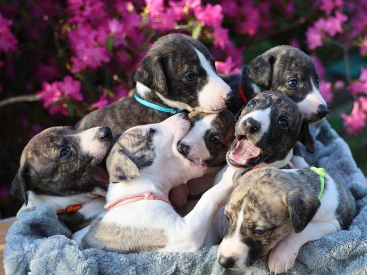 Cinq adorables petits princes Whippet nés le 24 janvier 2026 recherchent leur famille pour la vie. De couleur bleu et bringé panaché blanc, ces mâles inscrits au Livre des Origines Français (LOF) sont...