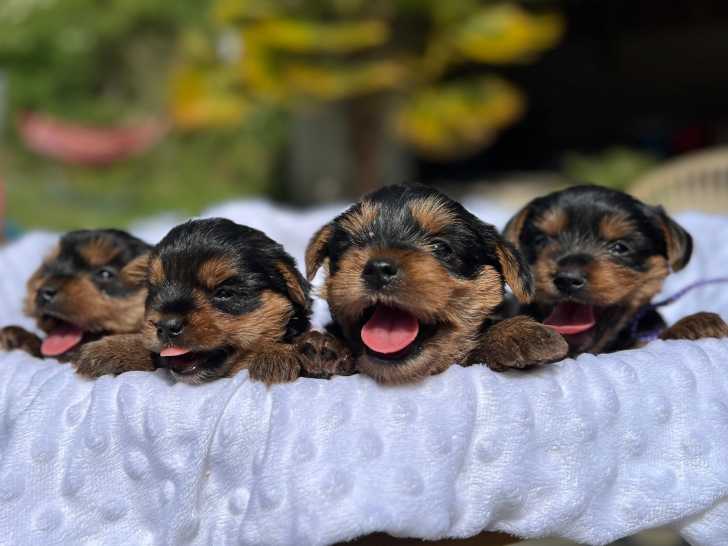 Nos adorables chiots Yorkshire Terrier seront disponibles à l'adoption à partir de 19 juin 2025. Ils ne sont pas inscrits au LOF. Ils sont nés le 30 avril 2025. Ils partiront vaccinés et pucés, avec leur carnet de santé et le certificat du vétérinaire. Les queues de nos chiots ne sont pas coupées.