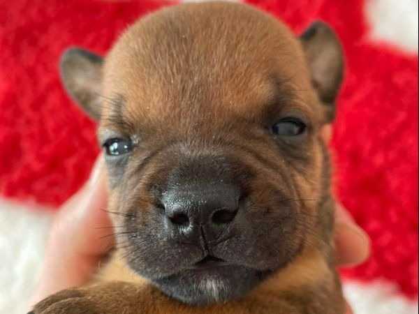 Notre élevage professionnel propose la réservation de cinq chiots Staffordshire Bull Terriers dont trois mâles et deux femelles ; chacun d'eux a un pelage bringé ou rouge. Ils sont nés le 19 janvier 2022.