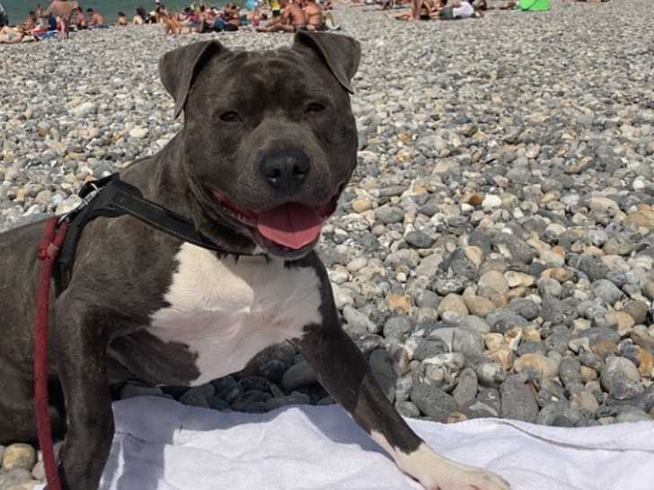 Sultan est un super gentil American Staff mâle de 4 ans, très bien entrainé et équilibré. Il s'entend bien avec tout le monde (chiens, chats, enfants...). Il a un pelage blanc et bringé et pèse 25 kg,...