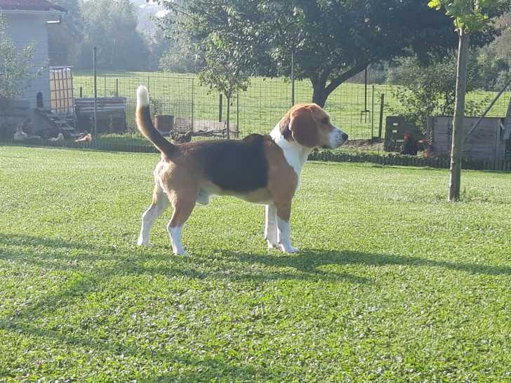 Je propose mon Beagle mâle, Omer des jardins de Vesco, pour saillie. Il est né le 21 juin 2018. Il est LOF et confirmé.