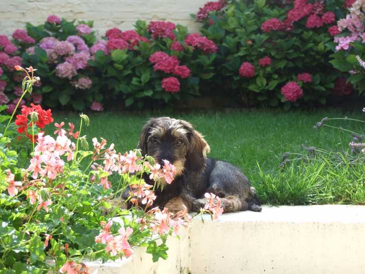 Igor est un Teckel à poils durs de couleur noire et fauve (bicolore).