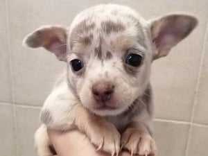 Un éleveur professionnel propose à la réservation des chiots Chihuahua non déclarés au Livre des Origines Français (LOF), chacun d'eux arbore un pelage chocolat merle, bleu merle, fauve et blanc, tricolore ou lilac.