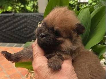 Nous proposons un superbe mâle Spitz Nain chocolat, né le 2 mars 2026, petit ourson nain à la recherche de sa famille. Issu de Saphir (maman Lof petit couleur orange light) et Aïko (papa Lof nain couleur...