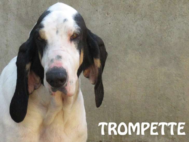Trompette est une chienne Ariégeoise à la fourrure tricolore d’un an que nous sommes enchantés de vous proposer à l'adoption. Timide, elle recherche un foyer aimant et patient, qui saura la rassurer.