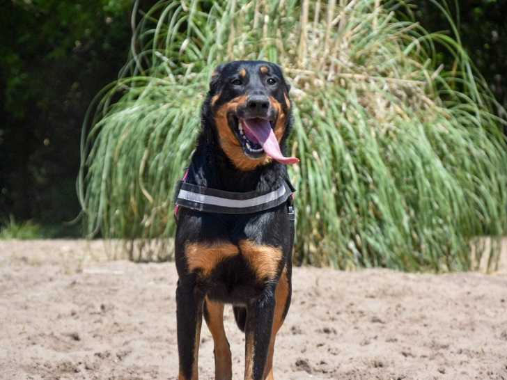 Une chienne Beauceron de couleur noir et feu est disponible à l'adoption dans notre refuge. gée de deux ans, cette dernière est une excellente compagne.