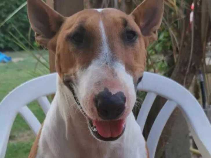 Nyla est une chienne Bull Terrier au pelage fauve et blanc âgée de sept ans que nous sommes ravis de vous proposer à l'adoption. Non compatible avec ses congénères, elle recherche une famille avec un jardin et vivant en campagne, qui poursuivra son éducation.