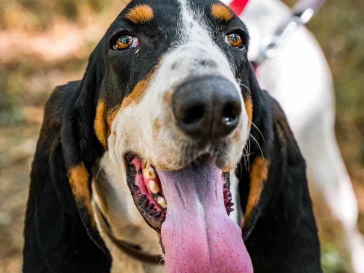 Nous mettons disponible à l'adoption Olga, une chienne Gascon Saintongeois au pelage tricolore de sept ans. Elle ne peut pas vivre avec des enfants ainsi qu'avec ses congénères.