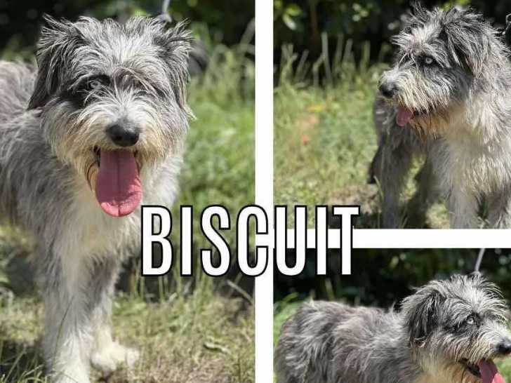 C'est avec plaisir que nous vous proposons à l'adoption Biscuit, une chienne Griffon au pelage gris et blanc, âgée de deux ans. Celle-ci peut cohabiter avec les enfants ainsi qu'avec ses congénères et les chats.