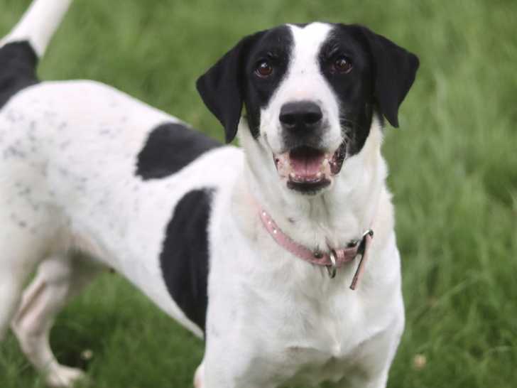 Nous vous proposons à l'adoption cette chienne noire et blanche âgée de trois ans appelée Nyla. Elle recherche une famille aimante qui lui offrira des moments de balade.