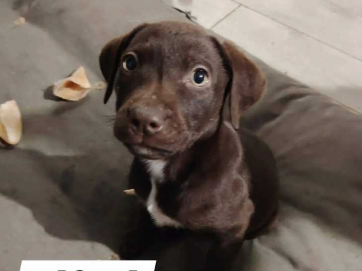 Voici Alfred, un chiot mâle au pelage chocolat et blanc âgé de deux mois. Il attend une famille attentive qui saura l’accompagner dans sa croissance et lui offrir un environnement chaleureux et sécurisant.