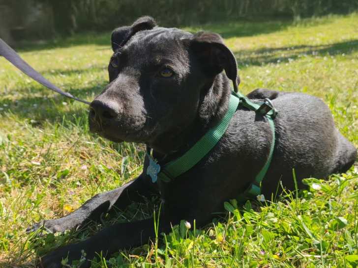 Loulou est son nom, ce chiot mâle noir avec marque blanche de six mois que nous vous proposons à l'adoption. Il s’entend bien avec tout le monde.