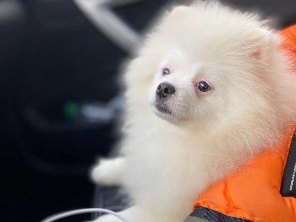 Nous proposons à la vente ce chiot femelle de race Spitz Pomeranian au pelage blanc à 3500 euros. Elle est déjà inscrite au Livre des Origines Français (LOF).