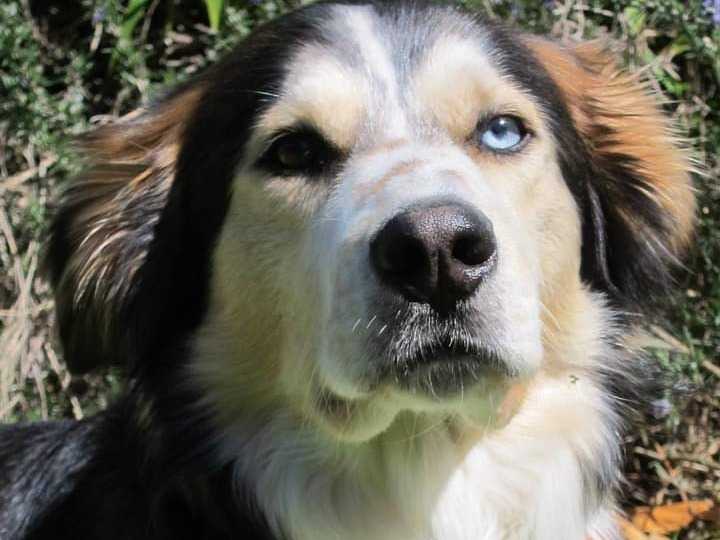 Grumo, 37 kilos, mâle alpha/dominant de 10 ans, est un chien bâtard qui ressemble à un Berger Australien.