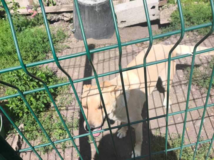 Elle est de couleur beige et ne grandira pas plus que ce qu'on voit sur les photos. Son poids est de 20 ou 22 kg.