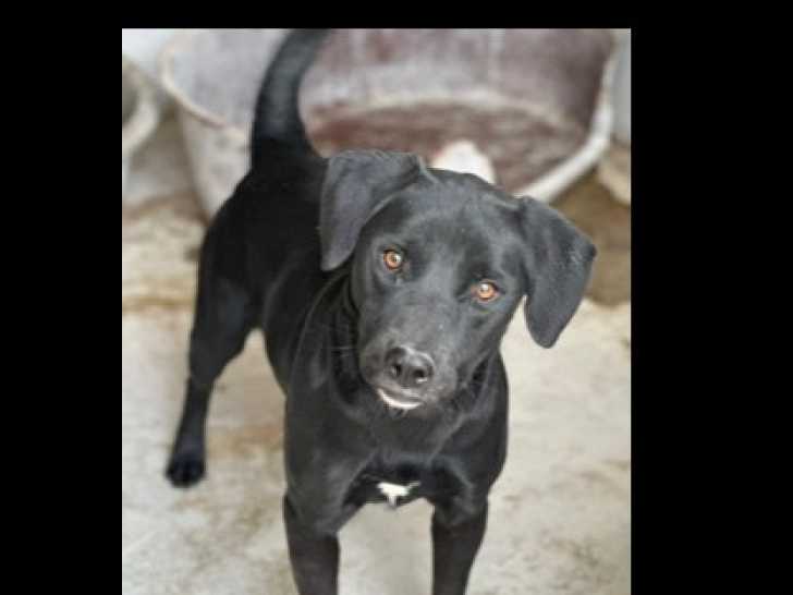 Nous sommes heureux de vous proposer à l'adoption ce chien noir avec marque blanche âgé de trois ans nommé Olso.
