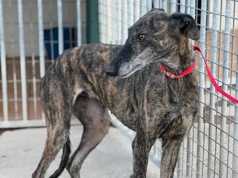 Voici Lara, une chienne Lévrier Espagnol à la fourrure bringée de quatre ans que nous sommes ravis de vous proposer à l'adoption. Elle espère trouver une famille aimante pour la vie.